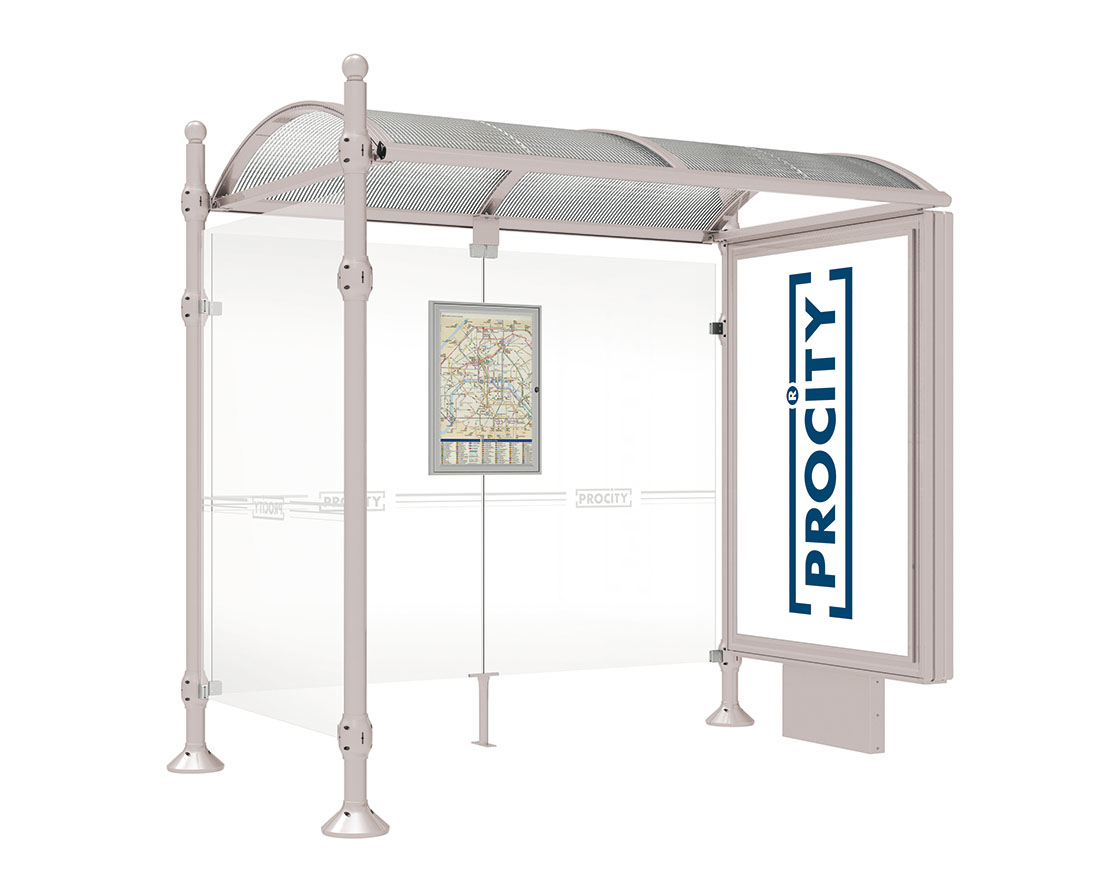 Wartehalle Province Kugel Farbe:RAL 7044|Länge:2500 mm|Struktur:Mit Leuchtcaisson und einer Seitenverkleidung