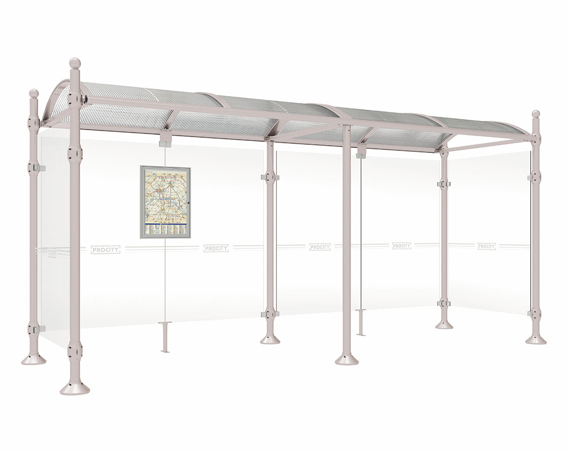 Wartehalle Province Kugel Farbe:RAL 7044|Länge:5000 mm|Struktur:Mit 2 Seitenverkleidungen