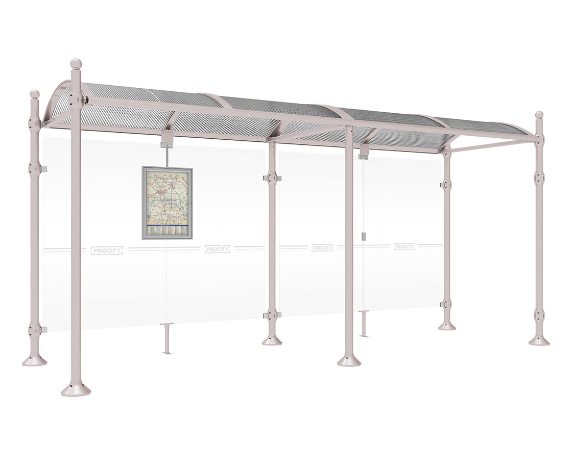Wartehalle Province Kugel Farbe:RAL 7044|Länge:5000 mm|Struktur:Ohne Seitenverkleidung