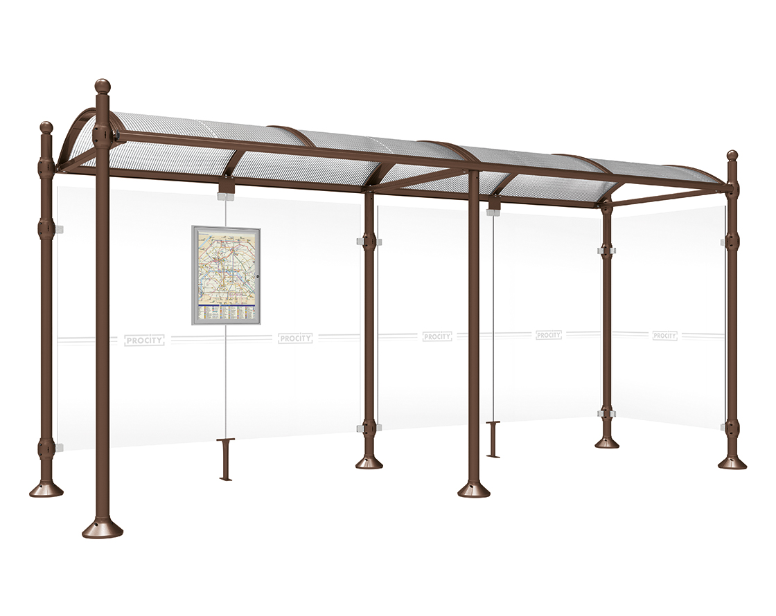 Wartehalle Province Kugel Farbe:RAL 8017|Länge:5000 mm|Struktur:Mit einer Seitenverkleidung