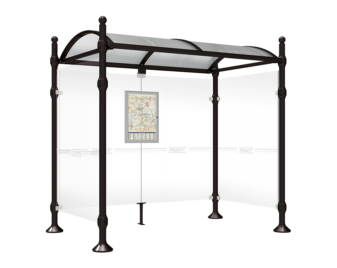Wartehalle Province Kugel Farbe:RAL 9005|Länge:2500 mm|Struktur:Mit 2 Seitenverkleidungen