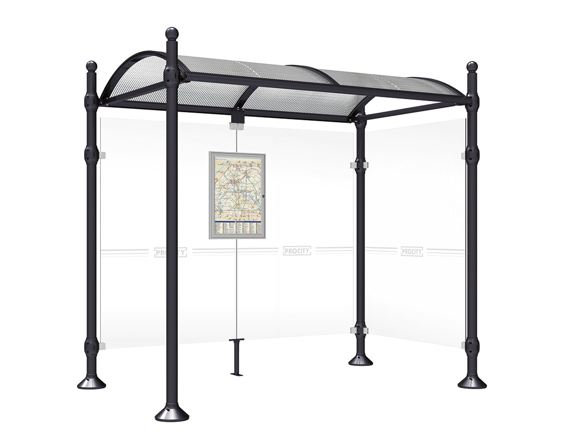 Wartehalle Province Kugel Farbe:RAL 9005|Länge:2500 mm|Struktur:Mit einer Seitenverkleidung