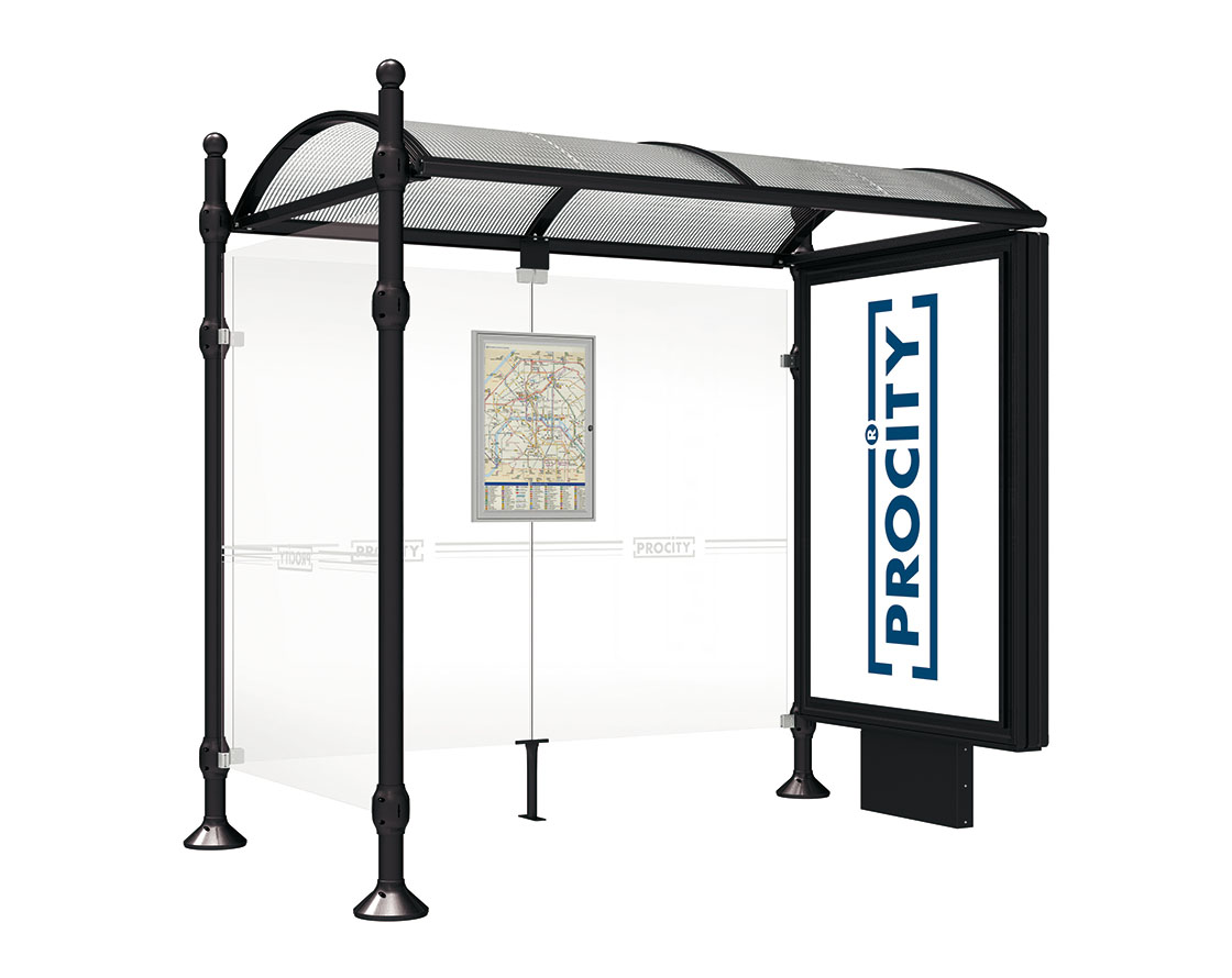 Wartehalle Province Kugel Farbe:RAL 9005|Länge:2500 mm|Struktur:Mit Leuchtcaisson und einer Seitenverkleidung