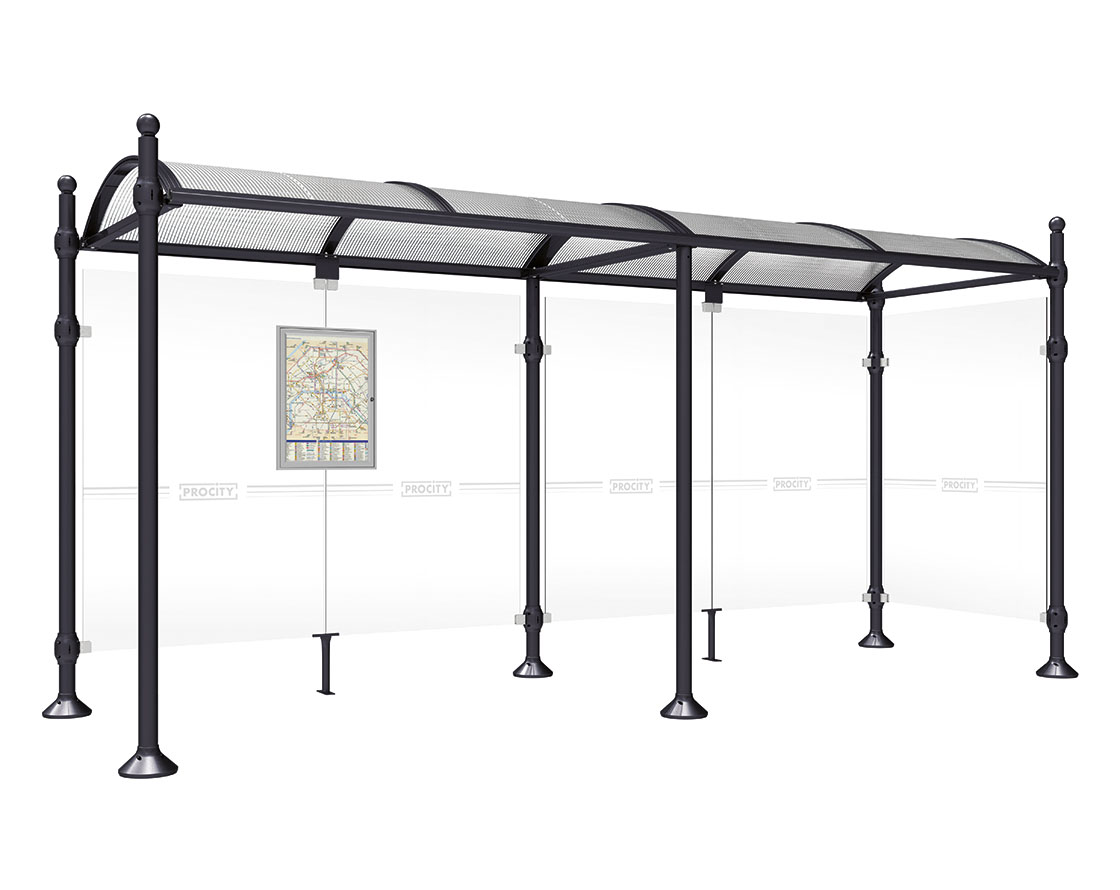 Wartehalle Province Kugel Farbe:RAL 9005|Länge:5000 mm|Struktur:Mit einer Seitenverkleidung