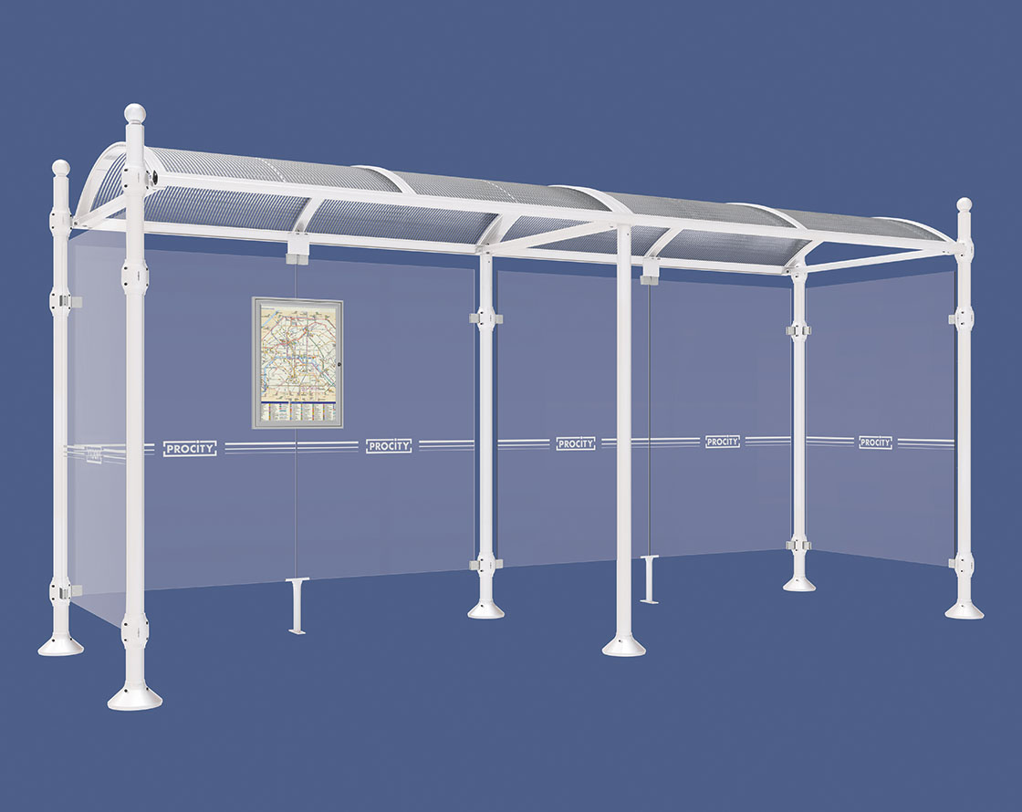 Wartehalle Province Kugel Farbe:RAL 9010|Länge:5000 mm|Struktur:Mit 2 Seitenverkleidungen