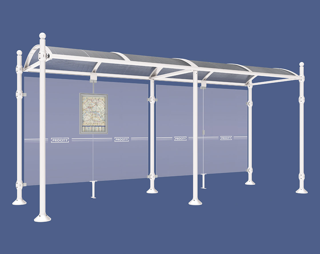Wartehalle Province Kugel Farbe:RAL 9010|Länge:5000 mm|Struktur:Ohne Seitenverkleidung
