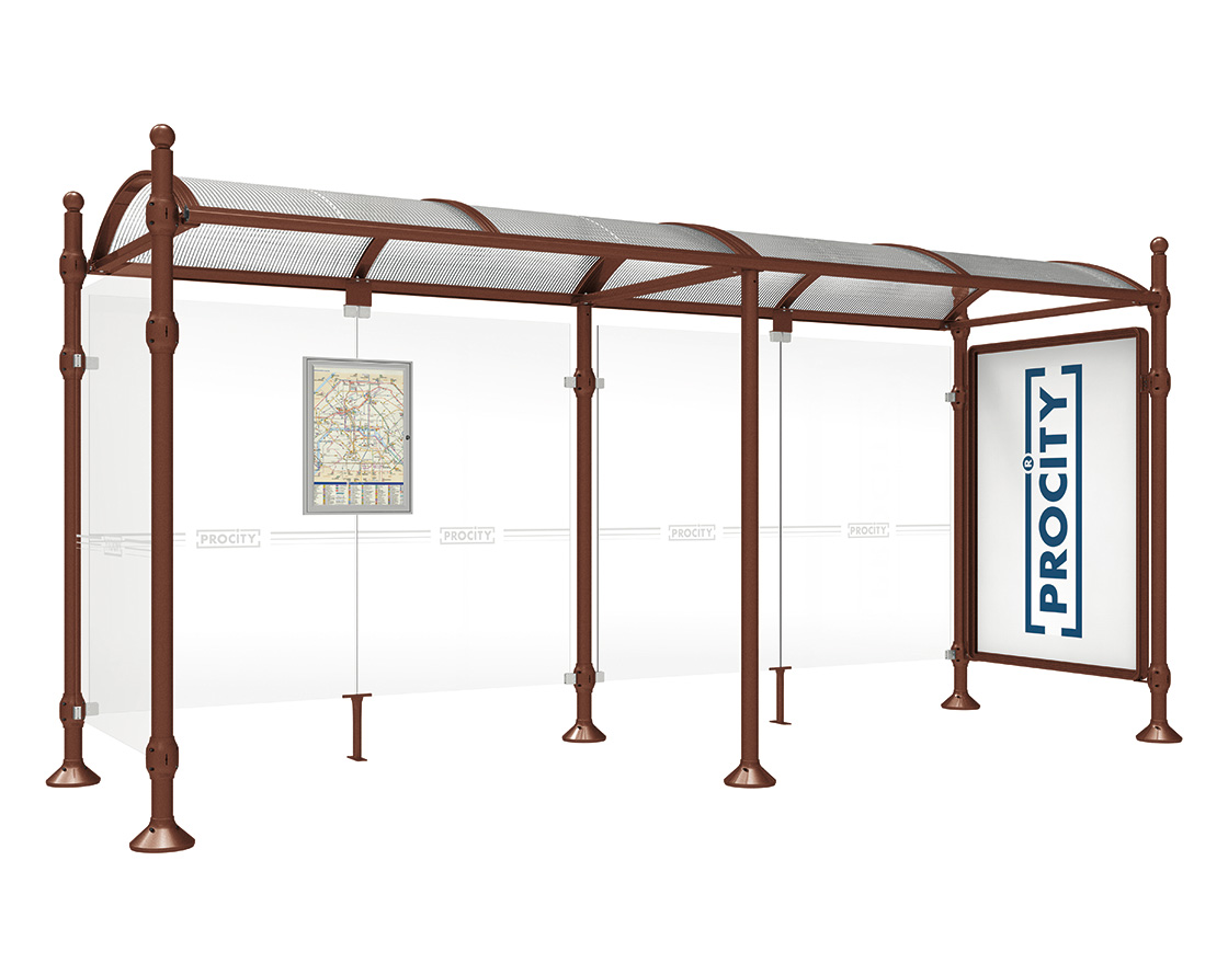 Wartehalle Province Kugel Farbe:Rost Korten Effekt|Länge:5000 mm|Struktur:Mit Schaukasten 2000 und eienr Seitenverkleidung