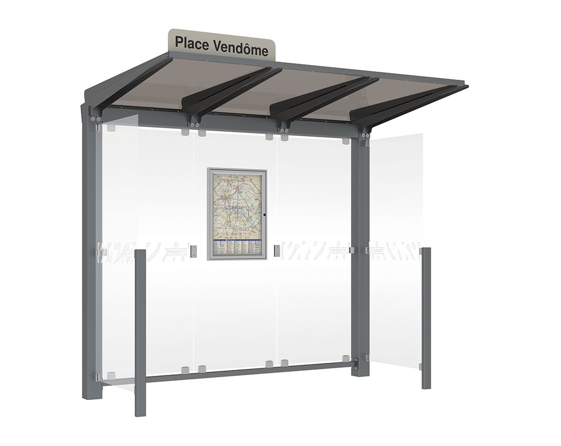 Wartehalle Venedig Farbe:Procity grau|Länge:2500 mm|Struktur:Mit 2 Seitenverkleidungen LED-Version