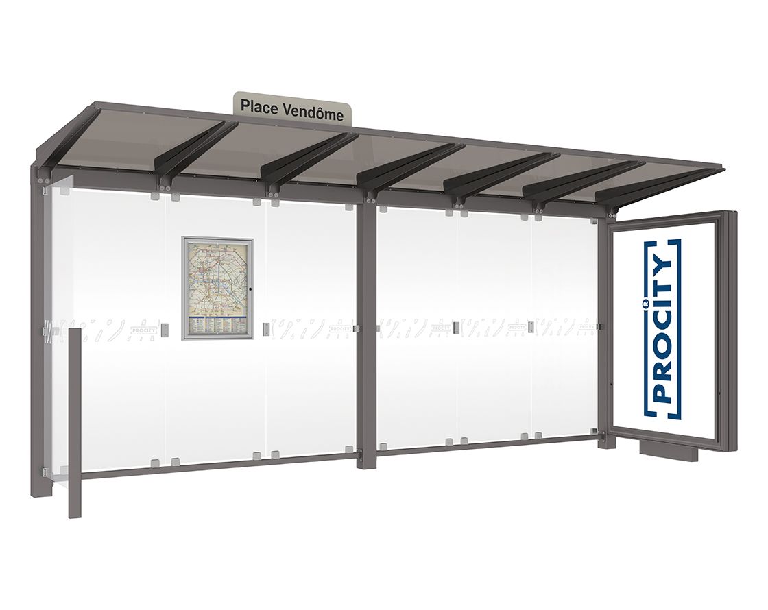 Wartehalle Venedig Farbe:Procity grau|Länge:5000 mm|Struktur:Mit Leuchtcaisson LED-Version