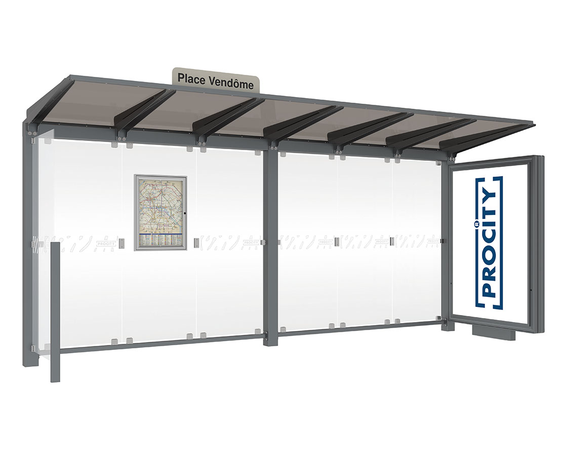 Wartehalle Venedig Farbe:Procity grau|Länge:5000 mm|Struktur:Mit Leuchtcaisson und einer Seitenverkleidung