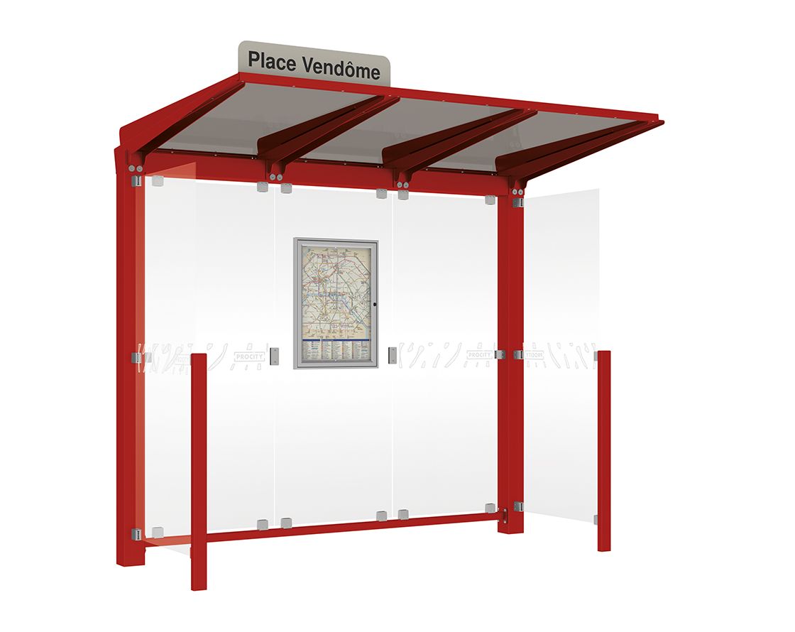 Wartehalle Venedig Farbe:RAL 3004|Länge:2500 mm|Struktur:Mit 2 Seitenverkleidungen LED-Version