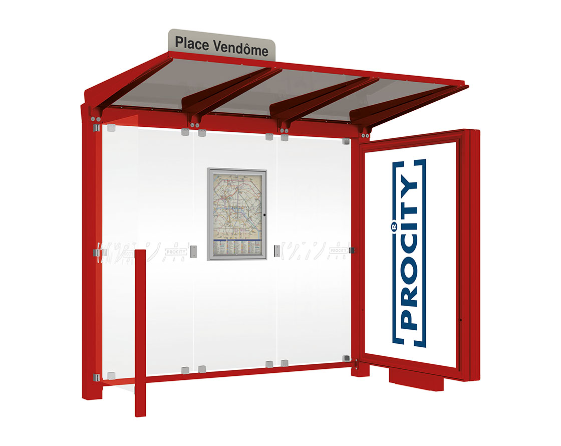 Wartehalle Venedig Farbe:RAL 3004|Länge:2500 mm|Struktur:Mit Leuchtcaisson und einer Seitenverkleidung