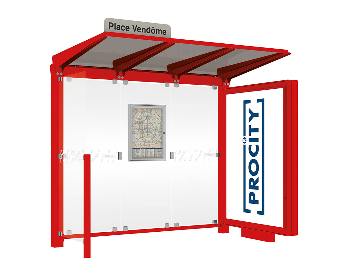 Wartehalle Venedig Farbe:RAL 3020|Länge:2500 mm|Struktur:Mit Leuchtcaisson und einer Seitenverkleidung