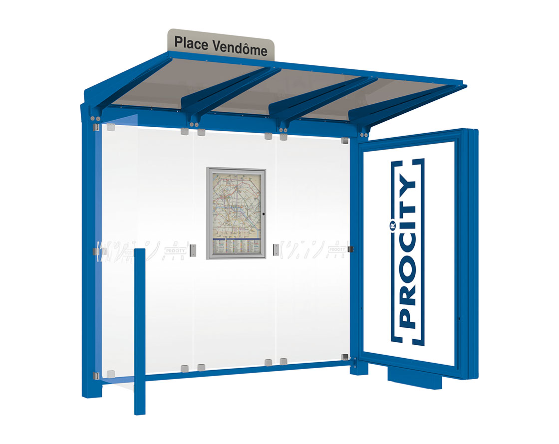Wartehalle Venedig Farbe:RAL 5010|Länge:2500 mm|Struktur:Mit Leuchtcaisson und einer Seitenverkleidung