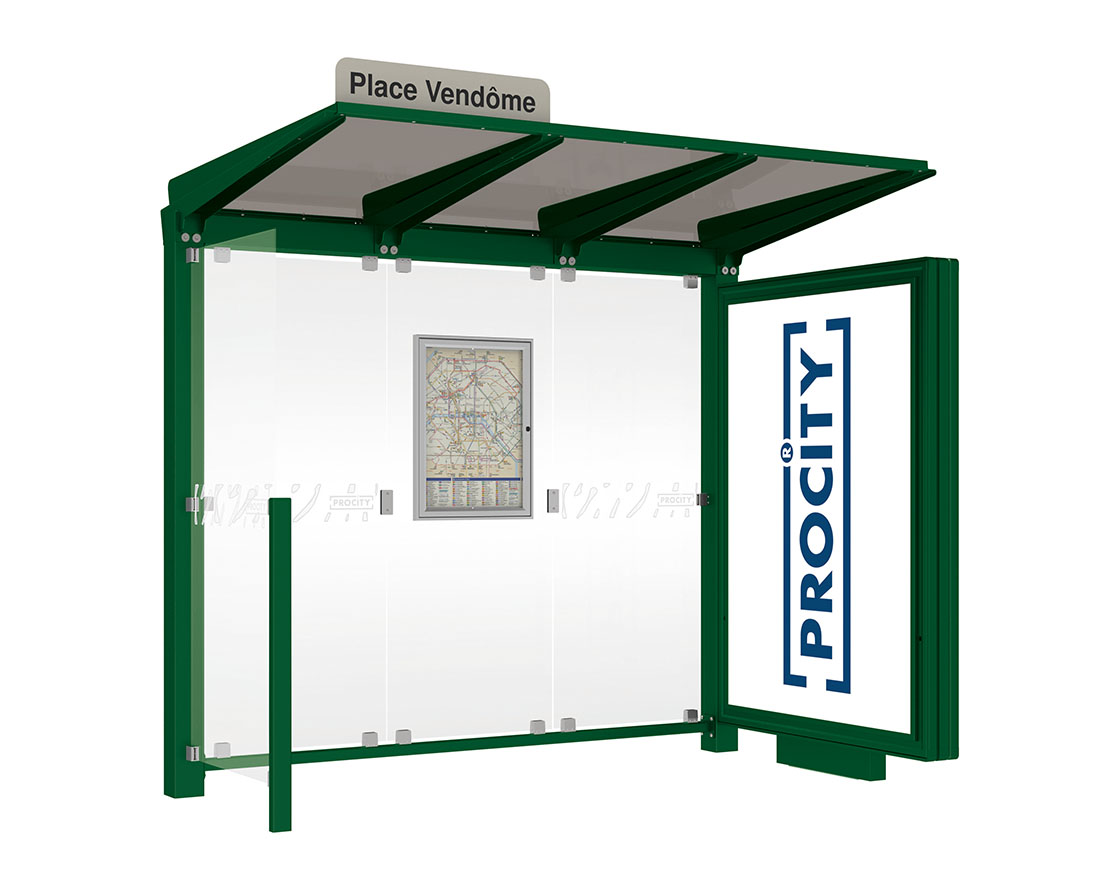 Wartehalle Venedig Farbe:RAL 6005|Länge:2500 mm|Struktur:Mit Leuchtcaisson und einer Seitenverkleidung