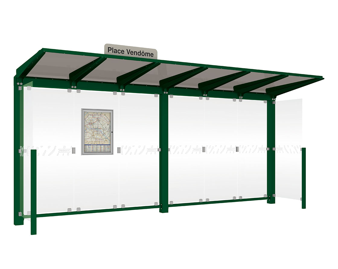 Wartehalle Venedig Farbe:RAL 6005|Länge:5000 mm|Struktur:Mit 2 Seitenverkleidungen LED-Version