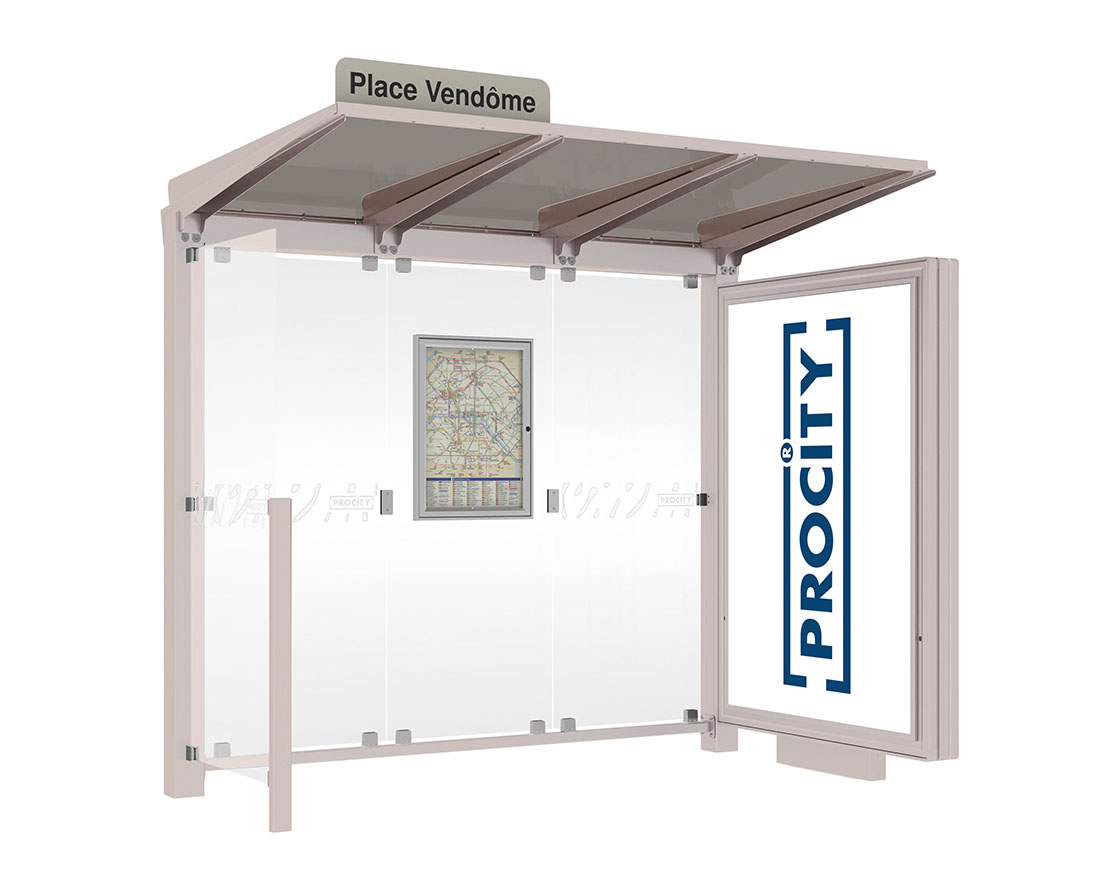 Wartehalle Venedig Farbe:RAL 7044|Länge:2500 mm|Struktur:Mit Leuchtcaisson und einer Seitenverkleidung