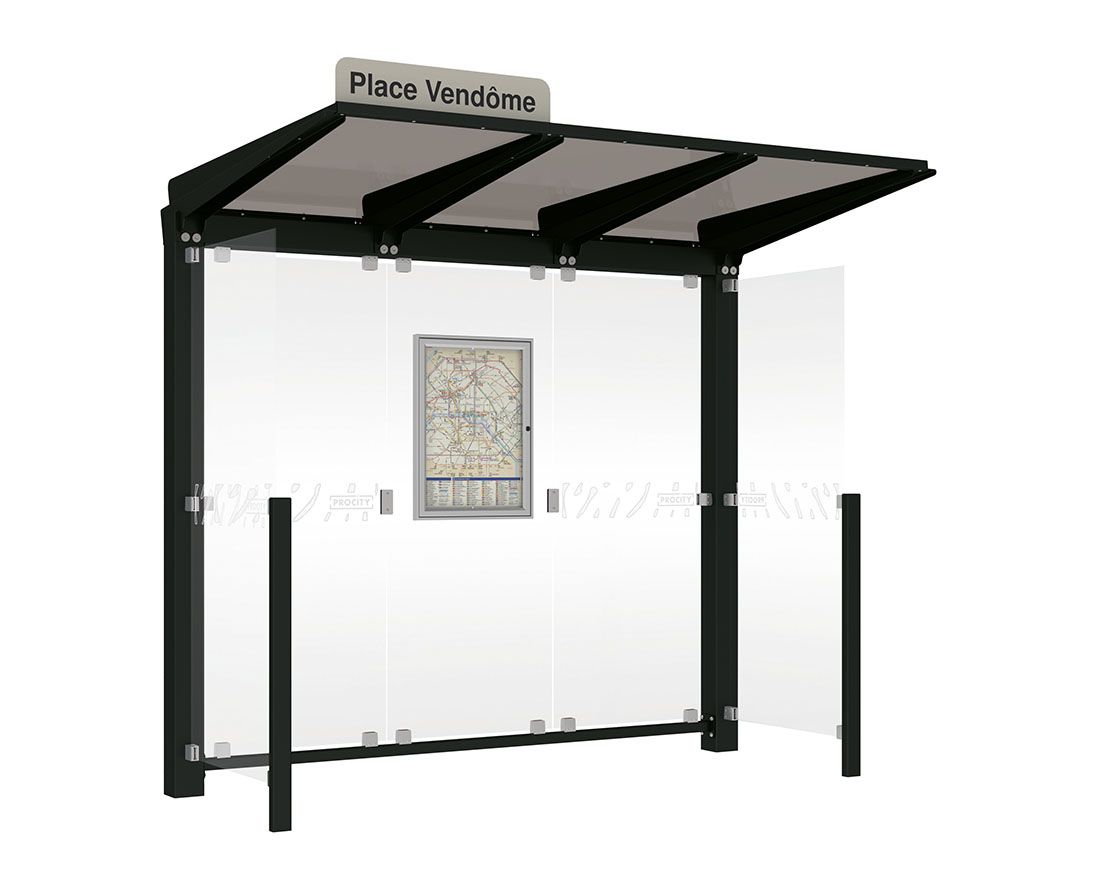 Wartehalle Venedig Farbe:RAL 9005|Länge:2500 mm|Struktur:Mit 2 Seitenverkleidungen LED-Version