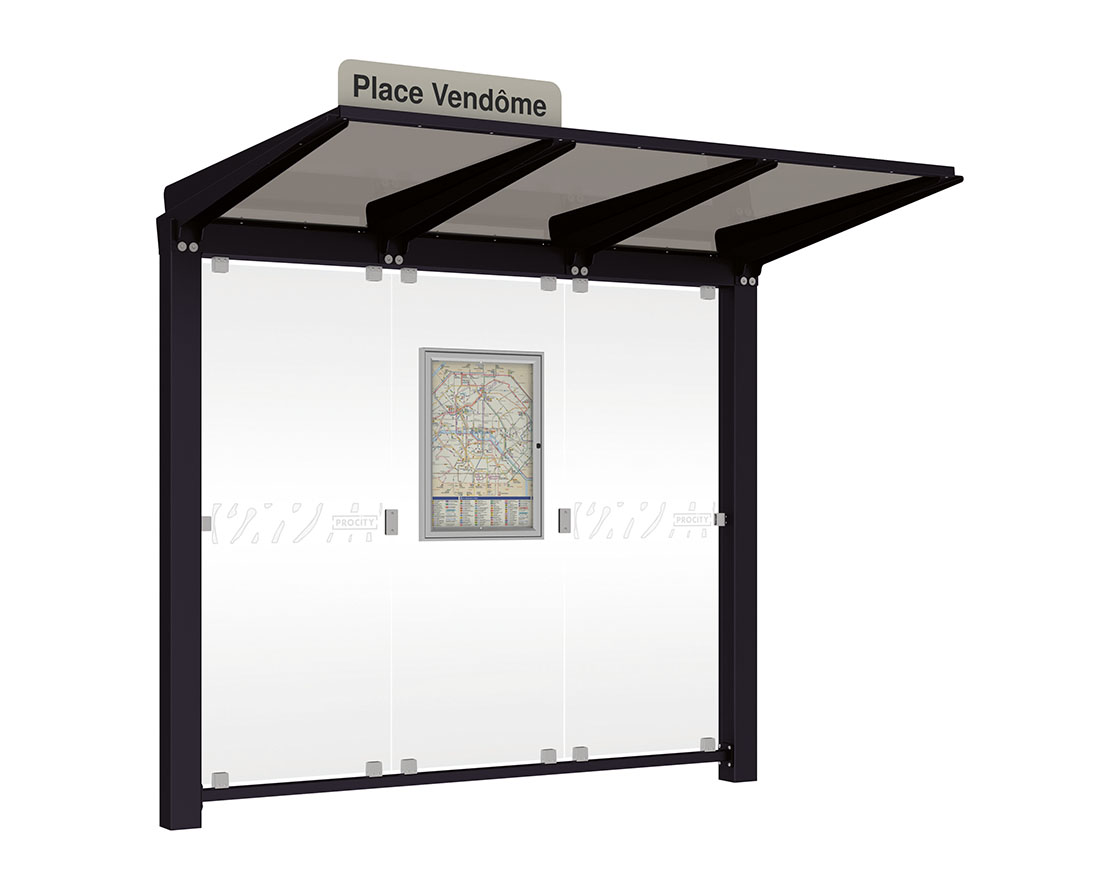Wartehalle Venedig Farbe:RAL 9005|Länge:2500 mm|Struktur:Ohne Seitenverkleidung LED-Version