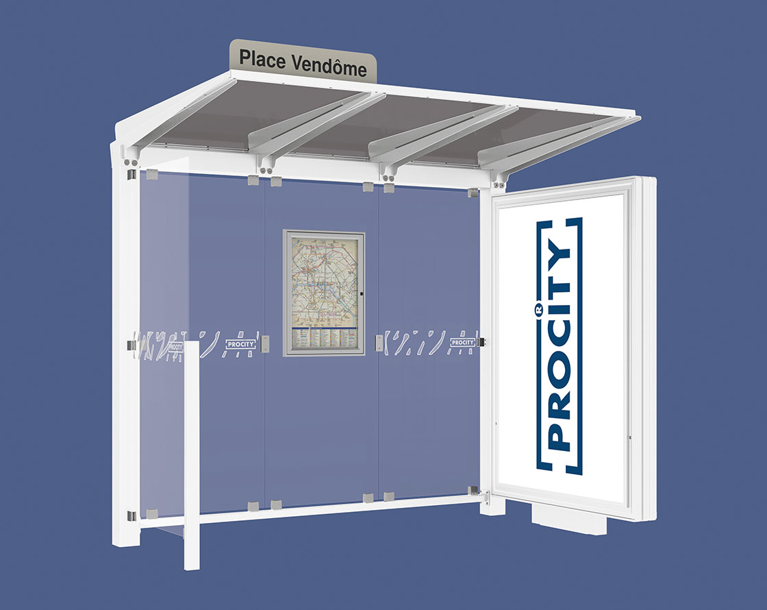 Wartehalle Venedig Farbe:RAL 9010|Länge:2500 mm|Struktur:Mit Leuchtcaisson und einer Seitenverkleidung
