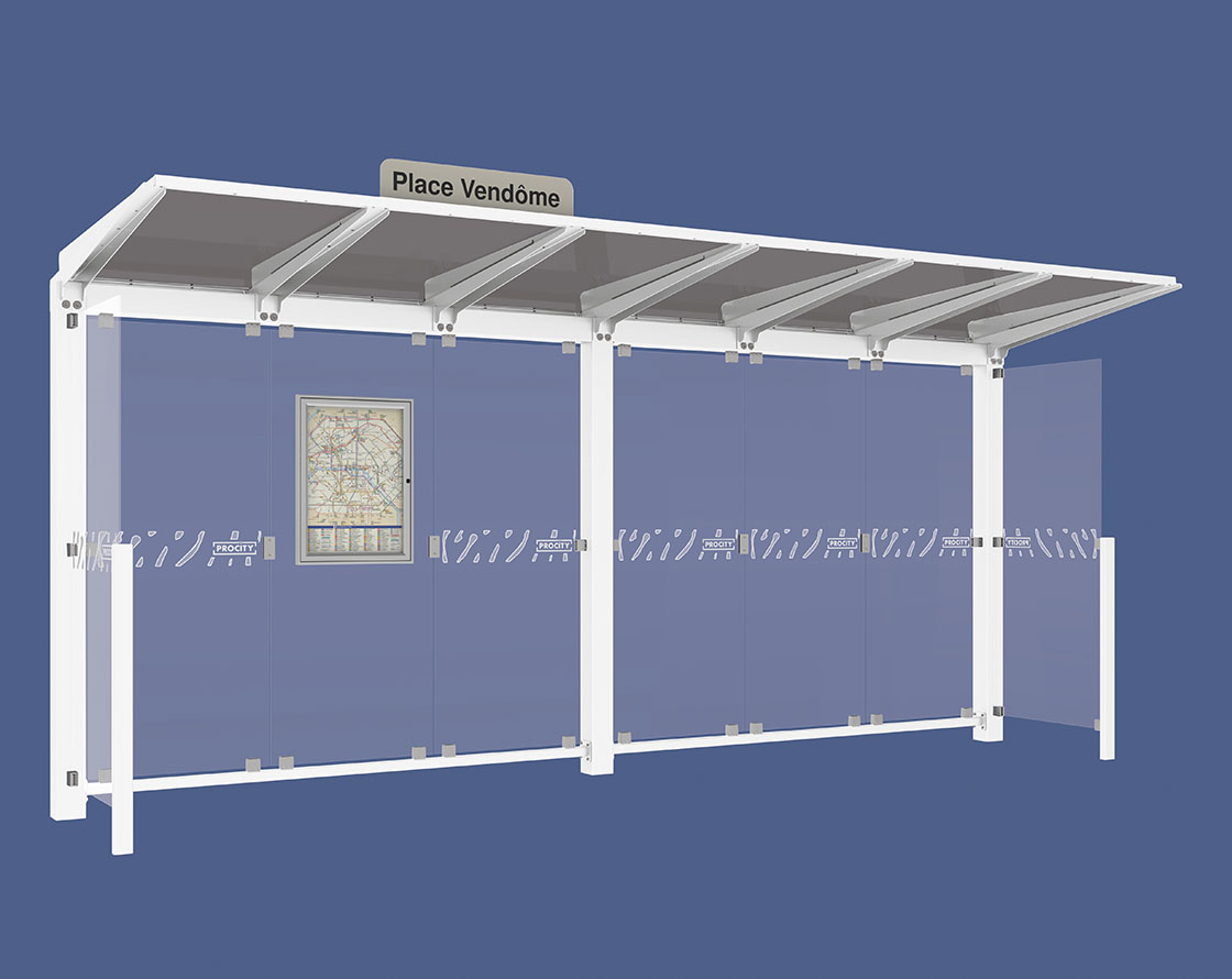 Wartehalle Venedig Farbe:RAL 9010|Länge:5000 mm|Struktur:Mit 2 Seitenverkleidungen LED-Version