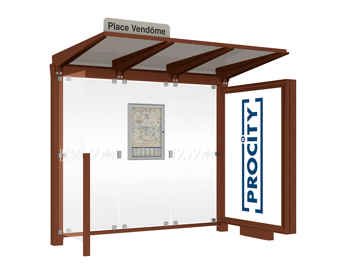 Wartehalle Venedig Farbe:Rost Korten Effekt|Länge:2500 mm|Struktur:Mit Leuchtcaisson und einer Seitenverkleidung