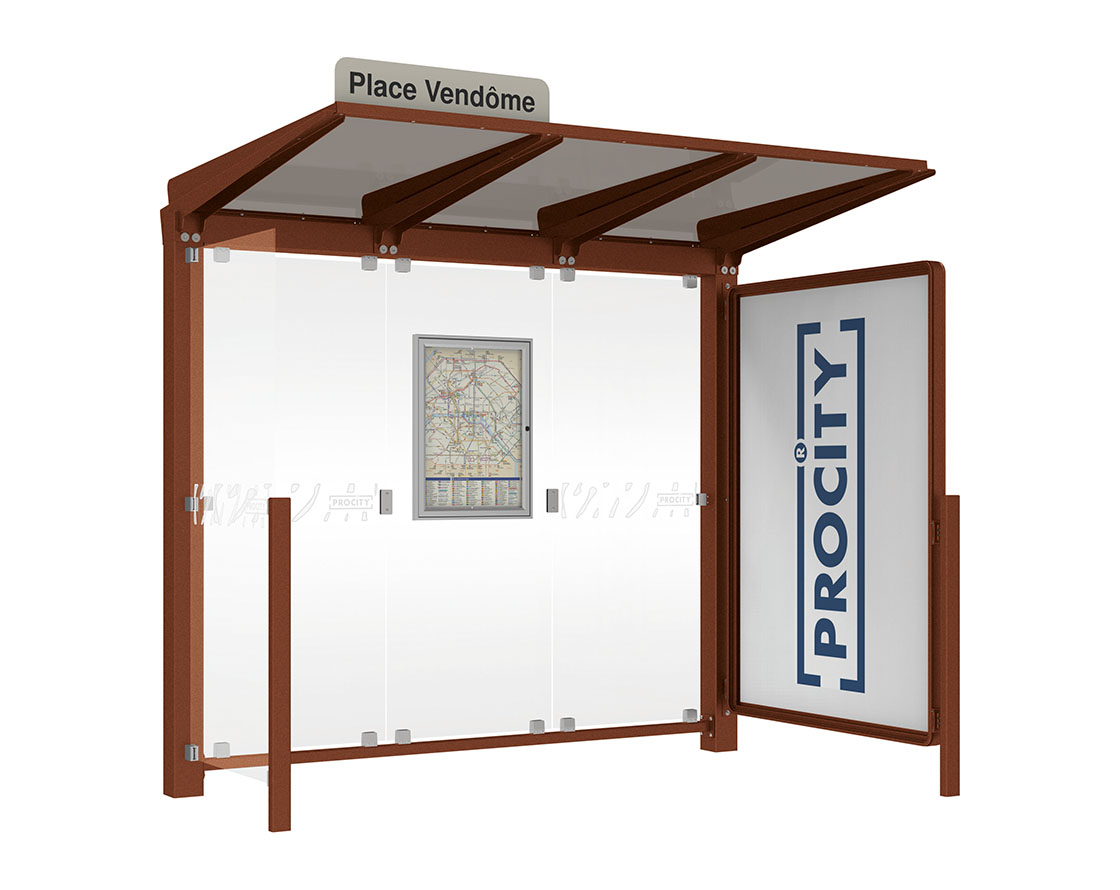 Wartehalle Venedig Farbe:Rost Korten Effekt|Länge:2500 mm|Struktur:Mit Schaukasten 2000 und eienr Seitenverkleidung