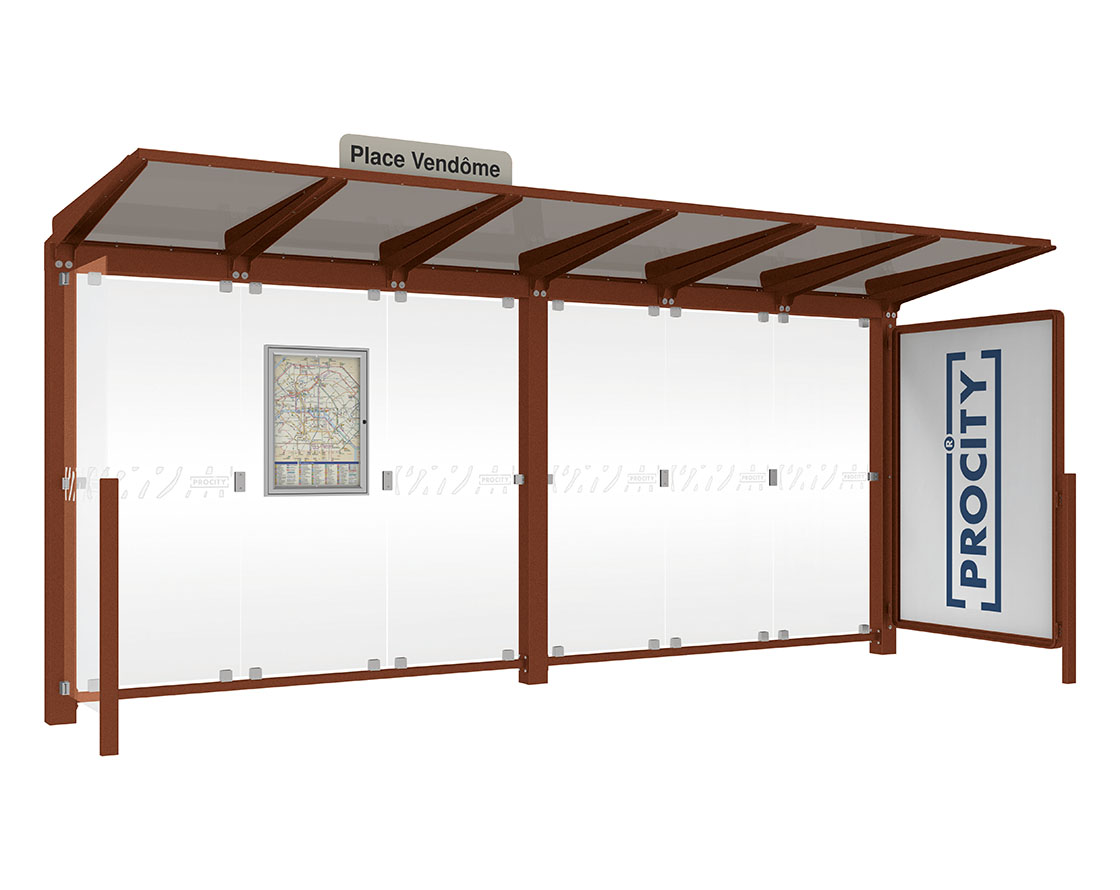 Wartehalle Venedig Farbe:Rost Korten Effekt|Länge:5000 mm|Struktur:Mit Schaukasten 2000 und eienr Seitenverkleidung