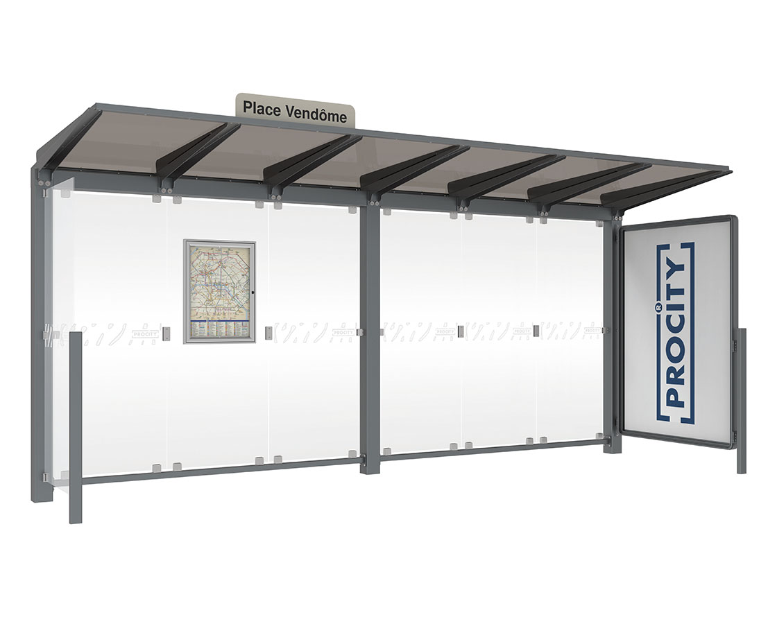 Wartehalle Venedig Farbe:Rost Korten Effekt|Länge:5000 mm|Struktur:Mit Schaukasten 2000 und Seitenverkleidung LED-Version